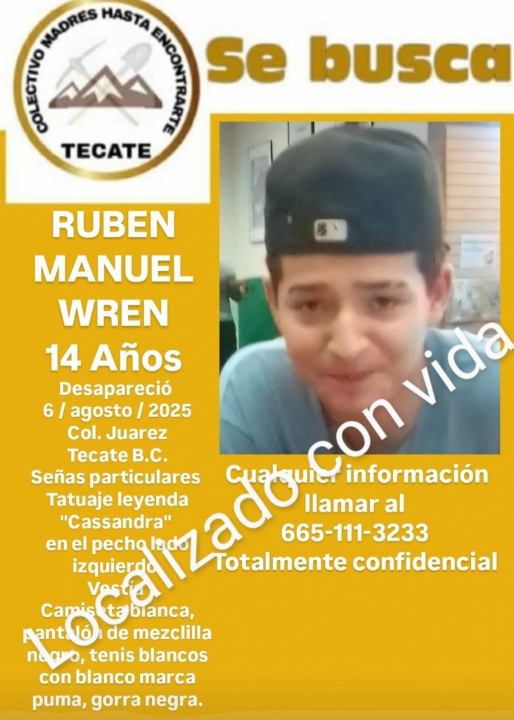 📌 SE TRATA DE RUBEN MANUEL WREN, DE 14 AÑOS DE EDAD.