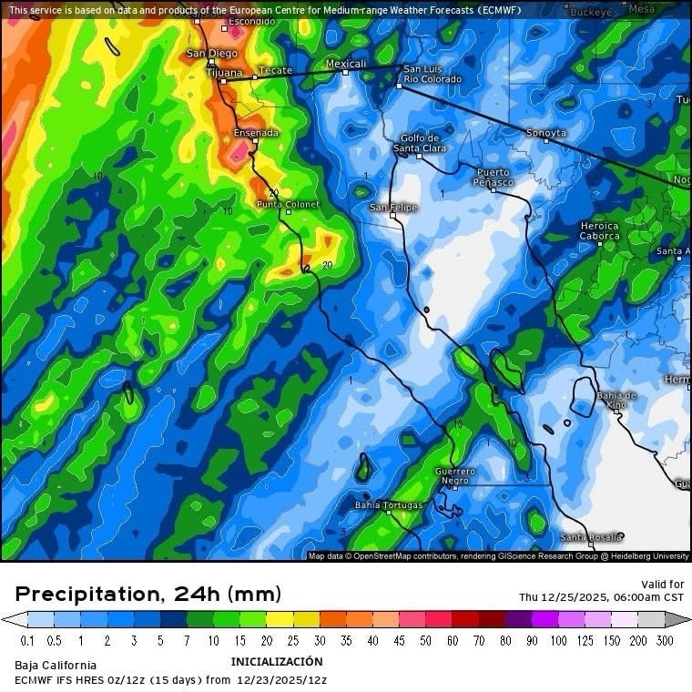📍DE ACUERDO AL SERVICIO METEOROLÓGICO NACIONAL, A PARTIR DE LA MADRUGADA DEL MIÉRCOLES 24 DE DICIEMBRE SE PRONOSTICAN LLUVIAS EN TECATE, TIJUANA, PLAYAS DE ROSARITO Y MEXICALI, CON POSIBILIDAD DE MUY FUERTES EN ENSENADA, ASÍ COMO NEVADAS EN ZONAS SERRANAS.