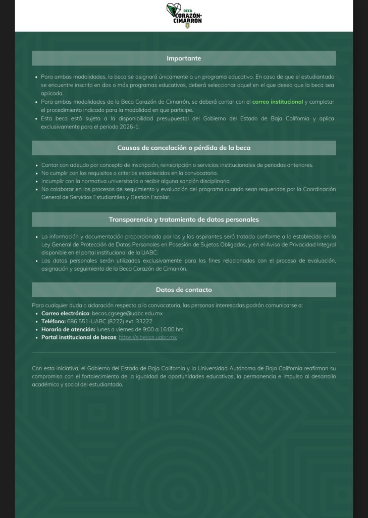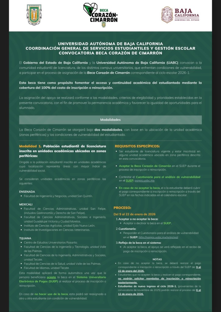 📍ESTUDIANTES DE LA UNIVERSIDAD AUTÓNOMA DE BAJA CALIFORNIA PODRÁN ACCEDER A LA BECA “CORAZÓN DE CIMARRÓN” PARA OBTENER EL 100% DE DESCUENTO EN SU INSCRIPCIÓN Y REINSCRIPCIÓN A PARTIR DE ESTE SEMESTRE.