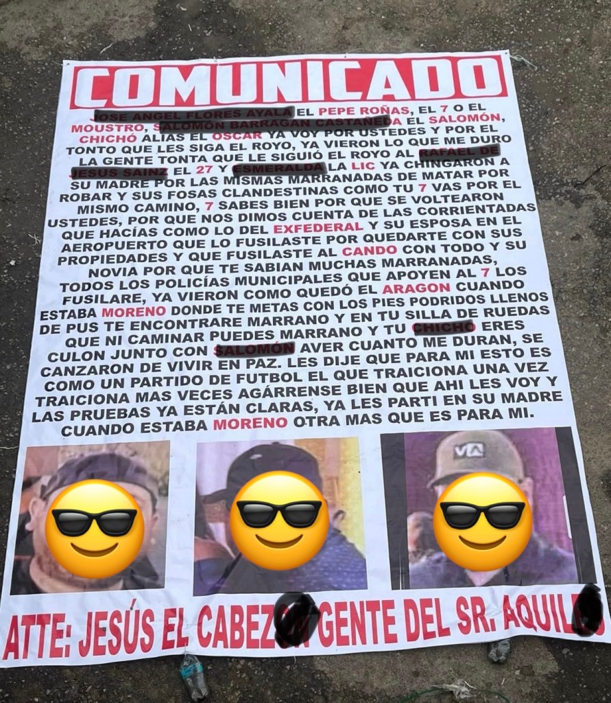 📌 AUTORIDADES CONFIRMARON QUE EL MENSAJE HACE REFERENCIA A HECHOS VIOLENTOS DE ALTO IMPACTO Y AJUSTES DE CUENTAS, POR LO QUE EL CASO YA ES INVESTIGADO POR INSTANCIAS CORRESPONDIENTES.