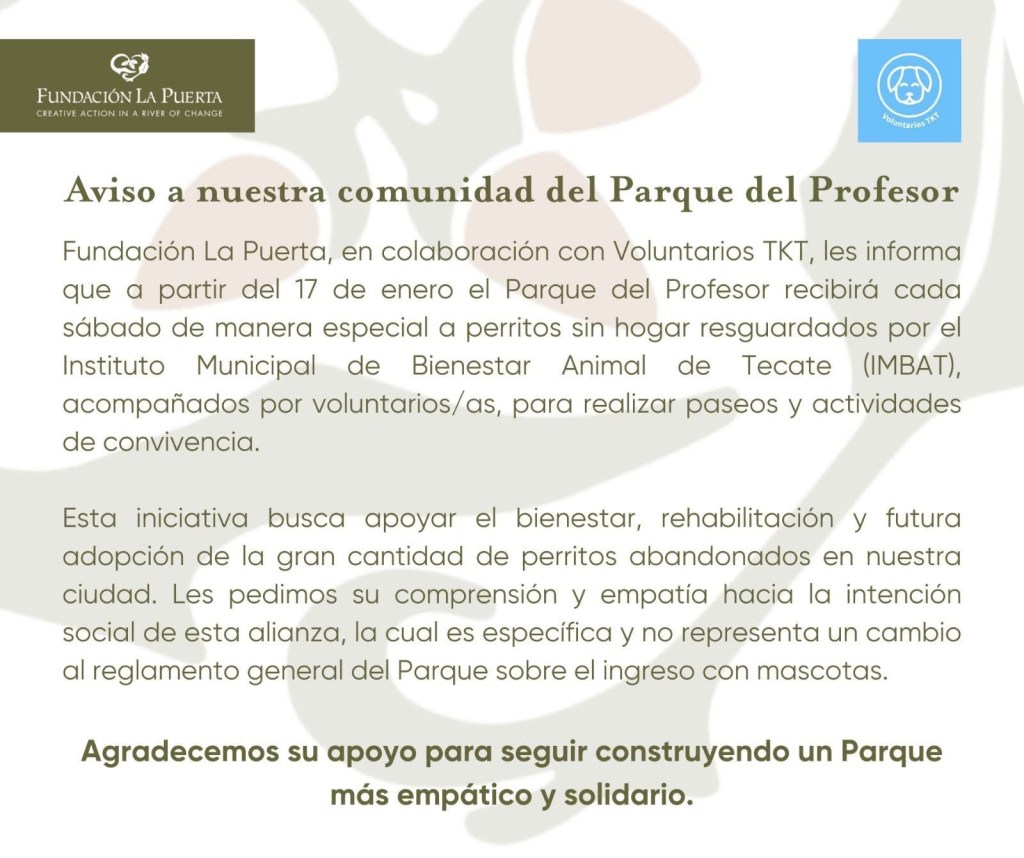 📍DE MANERA ESPECIAL, PERRITOS SIN HOGAR A CARGO DE VOLUNTARIOSTKT VISITARÁN EL PARQUE DEL PROFESOR COMO PARTE DE UNA ACTIVIDAD DE CONCIENTIZACIÓN.
