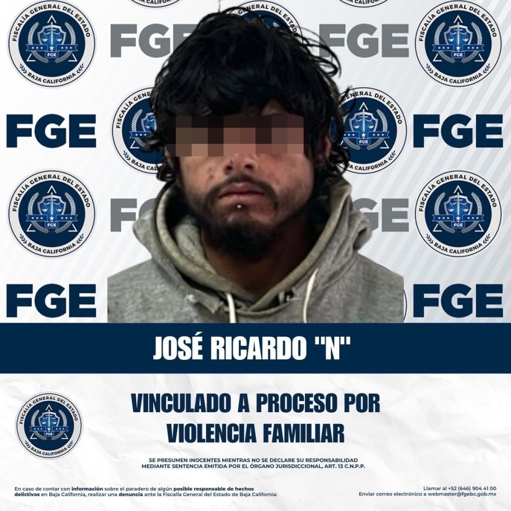 TECATE, BAJA CALIFORNIA A 24 DE ENERO DE 2026.- La Fiscalía Regional de Tecate, a través de la Unidad de Investigación de Delitos con Detenido, logró obtener la vinculación a proceso en contra de José Ricardo “N”, por el delito de violencia familiar, en su modalidad de ejercer violencia contra pariente consanguíneo ascendente, de forma psicológica y física, en agravio de sus padres.