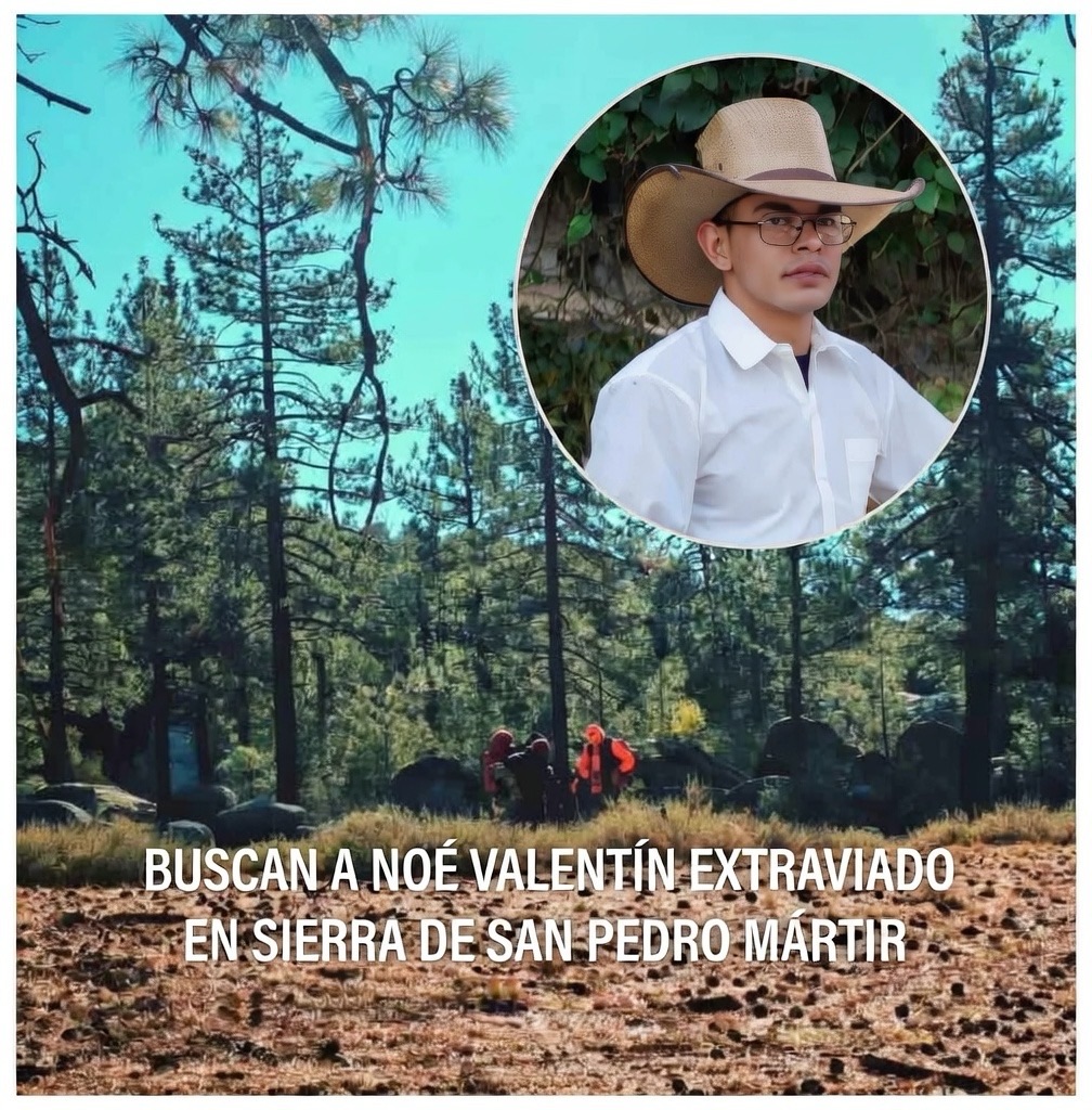 📍 NOÉ VALENTÍN, DE 28 AÑOS DE EDAD, FUE REPORTADO COMO PERSONA EXTRAVIADA EN EL PARQUE NACIONAL SIERRA DE SAN PEDRO MÁRTIR.