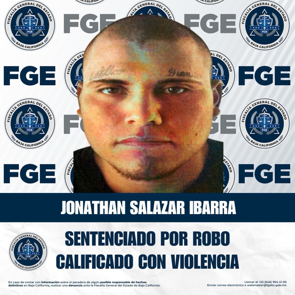 TECATE, BAJA CALIFORNIA A 30 DE ENERO DE 2026.- La Fiscalía Regional de Tecate informó que, gracias a la exposición de datos de prueba suficientes ante el Juez y a las labores realizadas por la Unidad de Delitos Contra Robos, se logró obtener una sentencia condenatoria en contra de Jonathan Salazar Ibarra, responsable del delito de robo calificado a casa habitación ejecutado con violencia, en hechos ocurridos en el municipio de Tecate, Baja California.