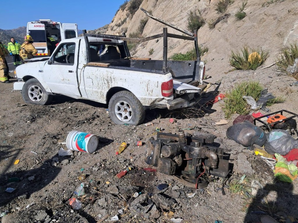 📍 VOLCADURA DE VEHÍCULO TIPO PICK UP FUE REPORTADA AL C5 A LA ALTURA DEL KM 107+300 DE LA AUTOPISTA MEXICALI HACIA TECATE.