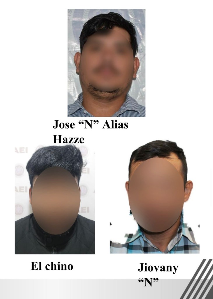 📌 COMO RESULTADO DE CATEOS E INVESTIGACIÓN ESTRATÉGICA FUERON DETENIDOS JESÚS ANTONIO “N” ALIAS “EL CHINO”, JIOVANY “N” Y JOSÉ “N” ALIAS “HAZZE”, DE ACUERDO A LAS AUTORIDADES.
