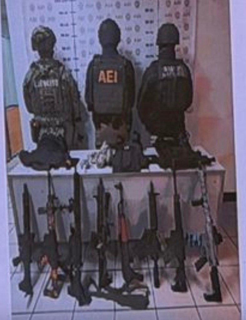 📌 EN EL SITIO FUERON ASEGURADAS 8 ARMAS LARGAS —7 TIPO AR-15 Y 1 AK-47— ADEMÁS DE 3 CHALECOS TÁCTICOS, UN RADIO DE COMUNICACIÓN.