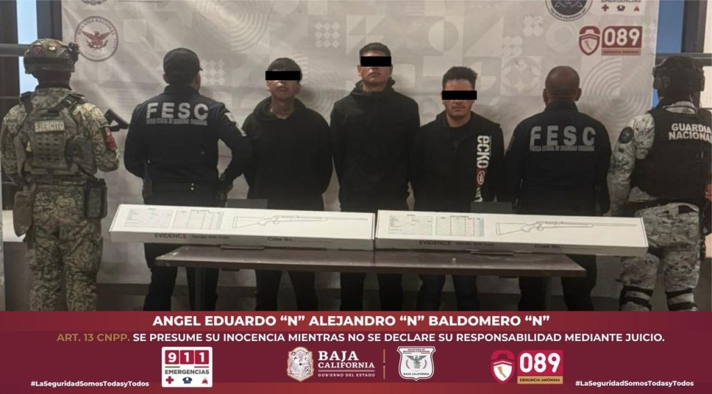 Los tres detenidos, junto con las armas aseguradas, fueron trasladados para certificación médica y puestos a disposición de la Fiscalía General de la República (FGR) con sede en Tijuana, autoridad que continuará con las investigaciones correspondientes.