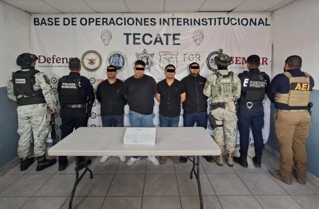 Tecate, Baja California; 16 de abril de 2026.– Como resultado de la respuesta inmediata a un reporte ciudadano, elementos de la Dirección de Seguridad Ciudadana y Tránsito Municipal, en coordinación con la Agencia Estatal de Investigación, DEFENSA y Guardia Nacional, lograron el aseguramiento de cuatro personas presuntamente relacionadas con hechos de violencia, así como el aseguramiento de dos armas de fuego.