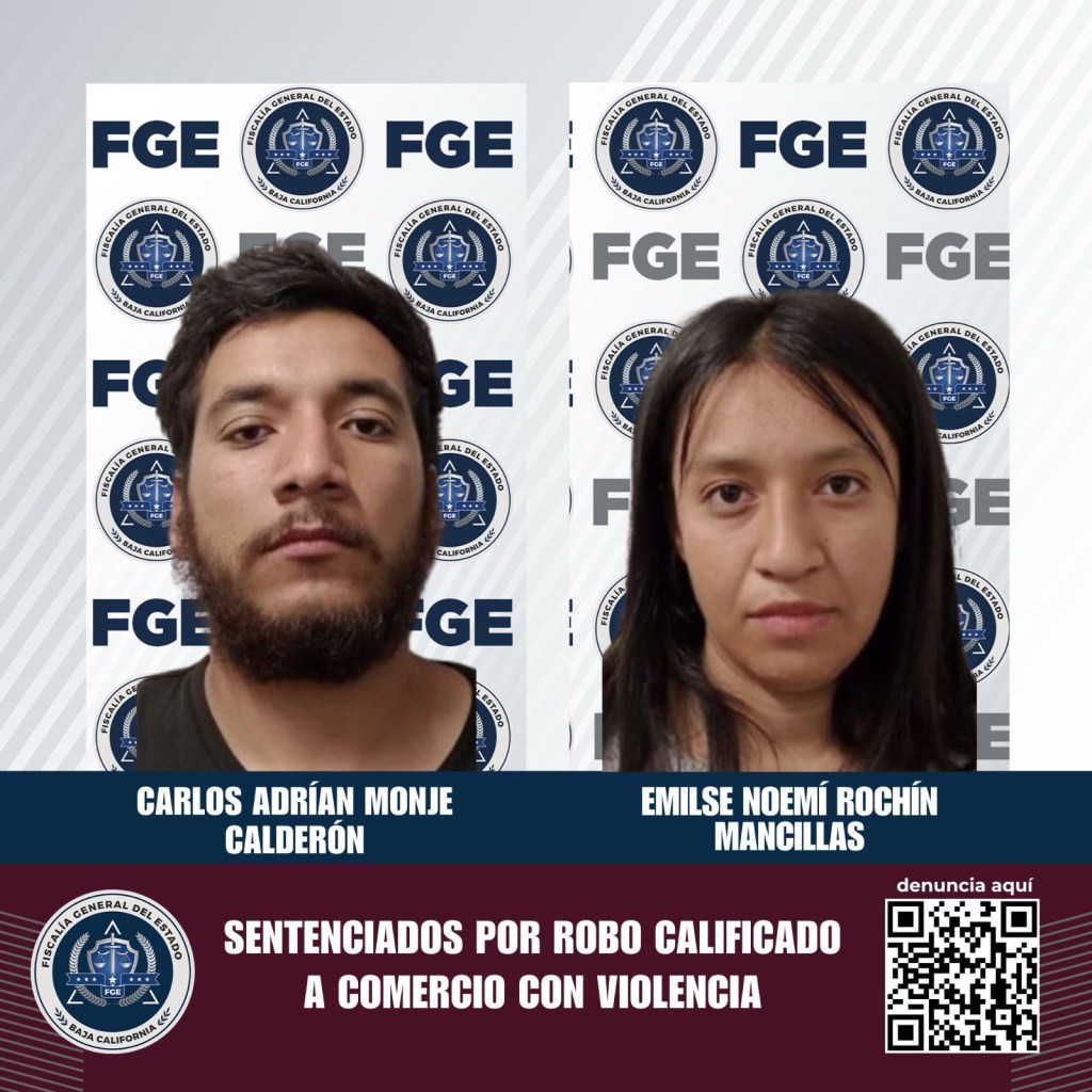 TIJUANA, BAJA CALIFORNIA, A 18 DE MAYO DE 2025.- La Fiscalía Regional de Tijuana, a través de la Unidad de Investigación Especializada en Robos Zona Centro, logró que se dictara sentencia condenatoria en contra de dos personas responsables del delito de robo calificado con violencia, cometido en una joyería ubicada en la colonia Lomas del Mar, al interior de la Plaza Pajarita de esta ciudad.